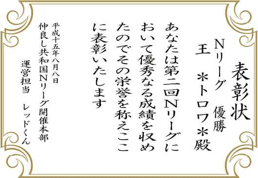 第二回 N-LEAGUEは*トロワ*氏の優勝!!!!